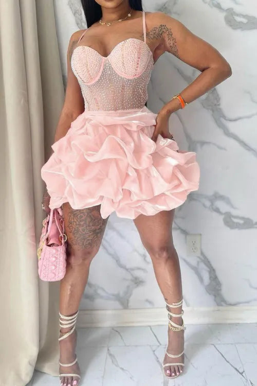 Sexy Pink Corset Ruffle Mini Dress