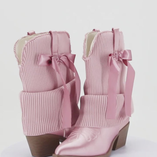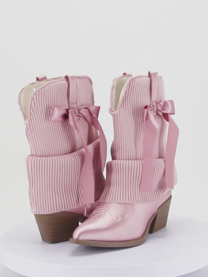 Ballet Inspired Pink Boho Festival Knit Foldover Western Boots