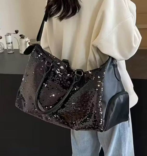 Beautiful Sparkling Black Sequin Carry-on Overnight Luggage Bag