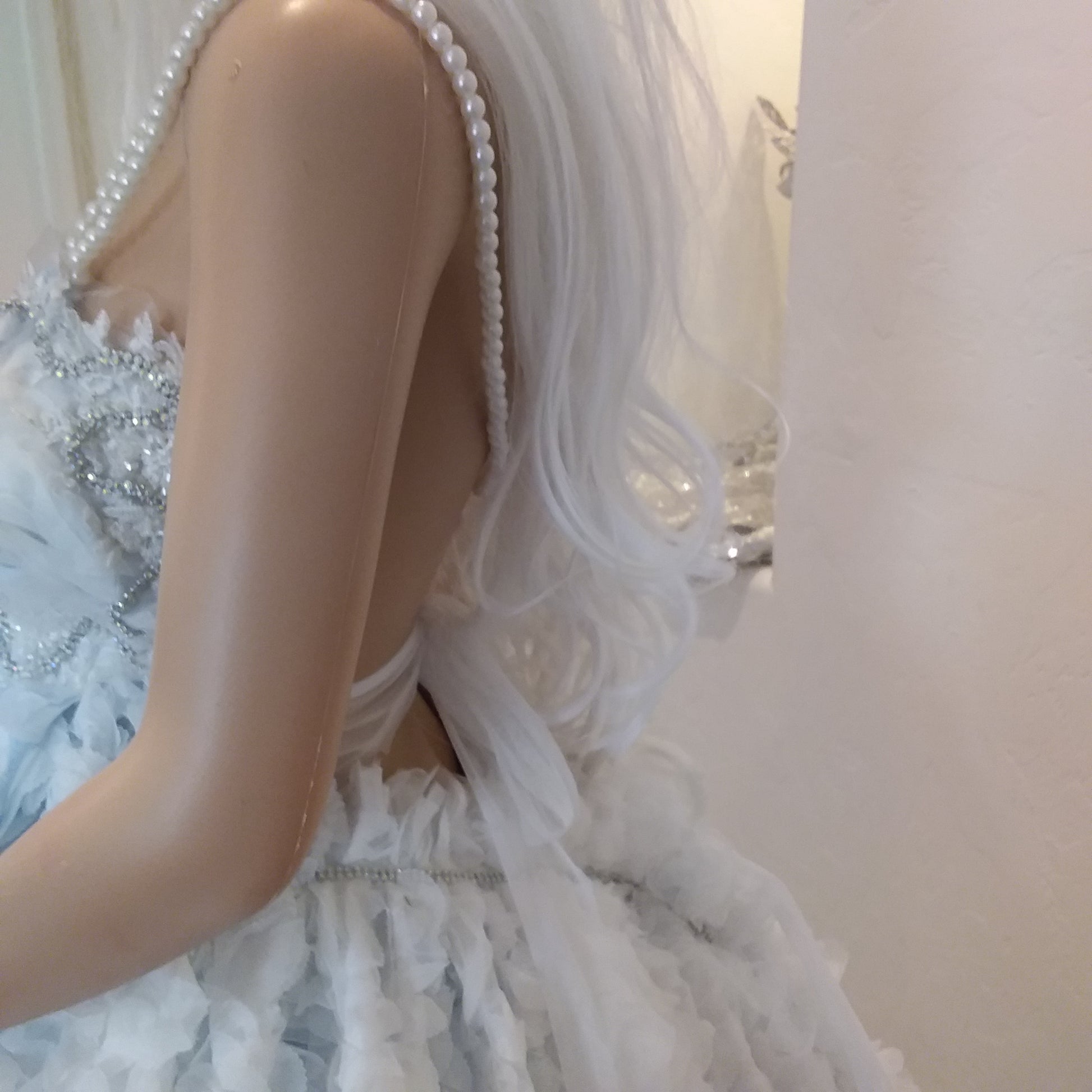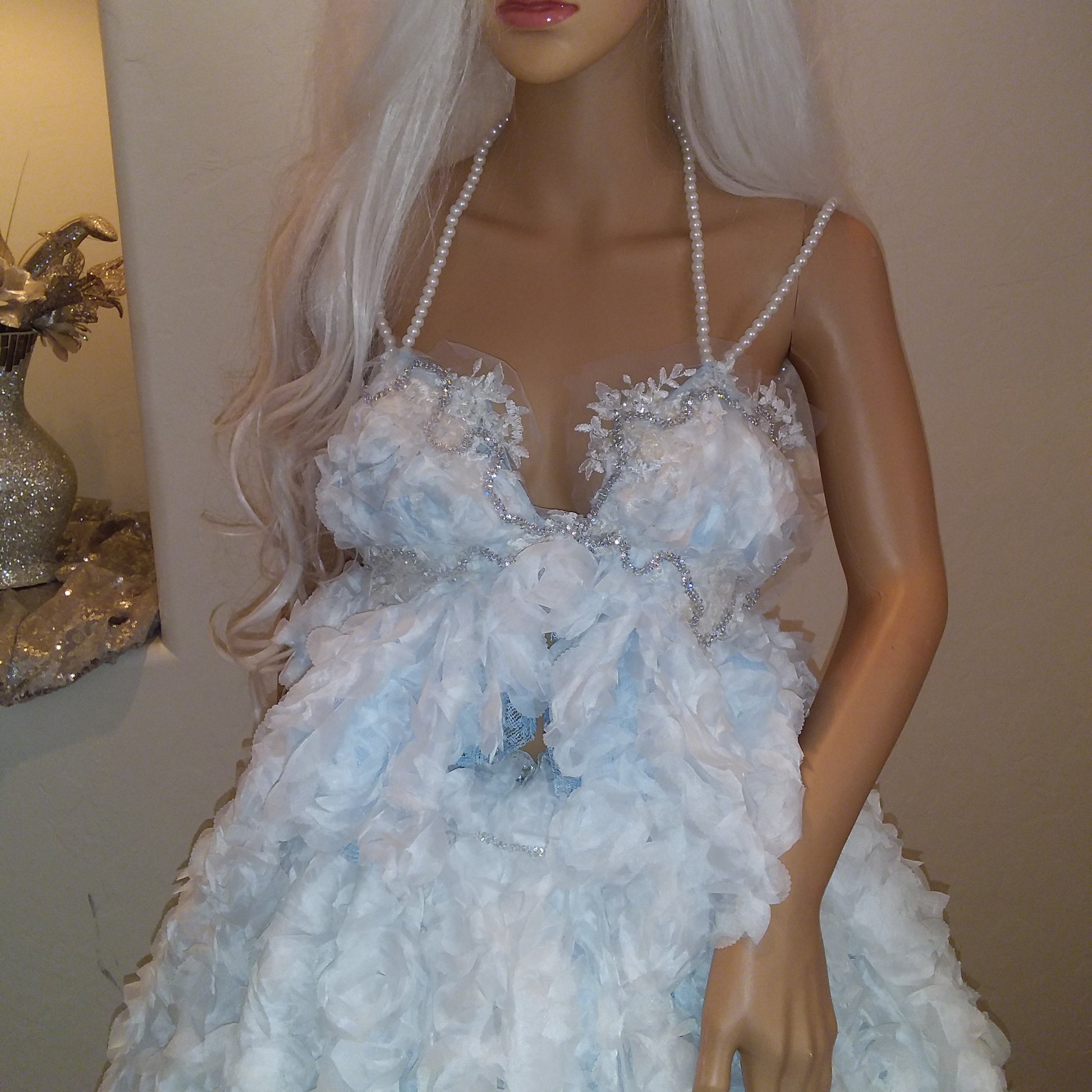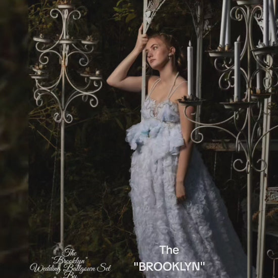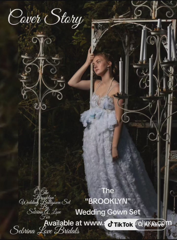 This romantic wedding ballgown set is part of my new 2023/24 collection. It is available by custom order in your choice of size and available color. Any raw, shredded, torn, tattered edges, fabric detail is intentional to reflect the vision of the Designer. It is in no way to be considered flaws or damages. Please allow 1-4 weeks for production before this gown set will ship. Express production and shipping are available for an additional rush fee. This item is a final sale. No returns, refunds or exchanges allowed. Absolutely no exceptions made. All other items pictured within this listing are priced and sold separately.