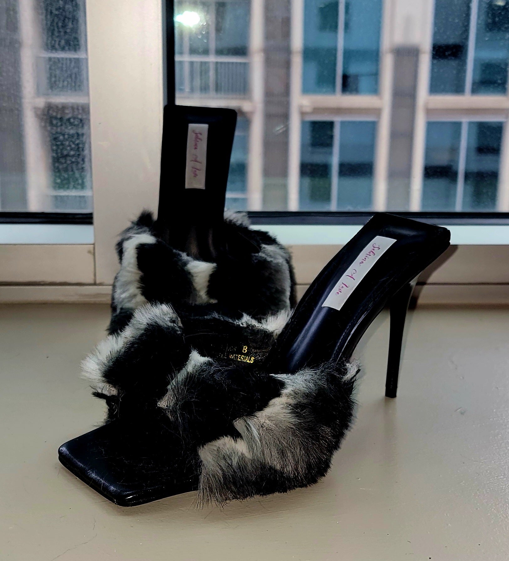Stunningly Beautiful Luxe Faux Chinchilla Fur Stiletto Mule Heels (Custom Order)