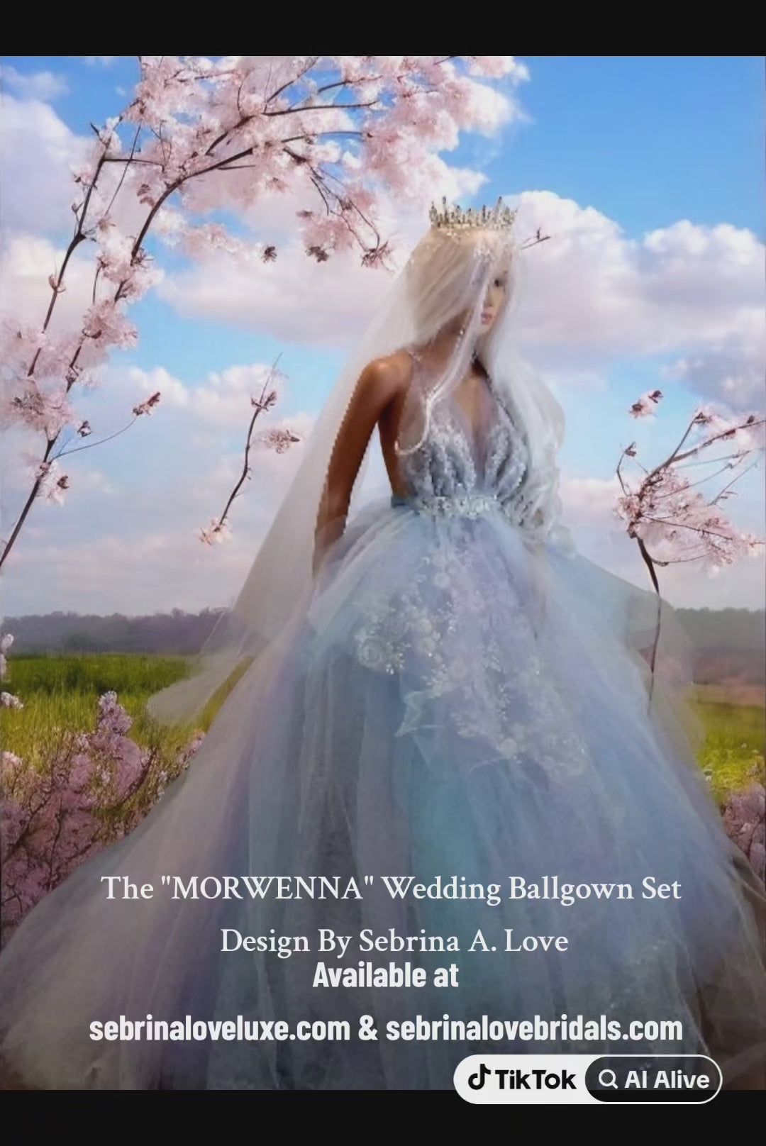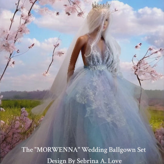 This romantic wedding ballgown set is part of my Something Blue collection. It is available by custom order in your choice of size and available color. Any raw, shredded, torn, tattered edges, fabric detail is intentional to reflect the vision of the Designer. It is in no way to be considered flaws or damages. Please allow 1-4 weeks for production before this gown set will ship. Express production and shipping are available for an additional rush fee. This item is a final sale. No returns, refunds or exchanges allowed. Absolutely no exceptions made. All other items pictured within this listing are priced and sold separately.