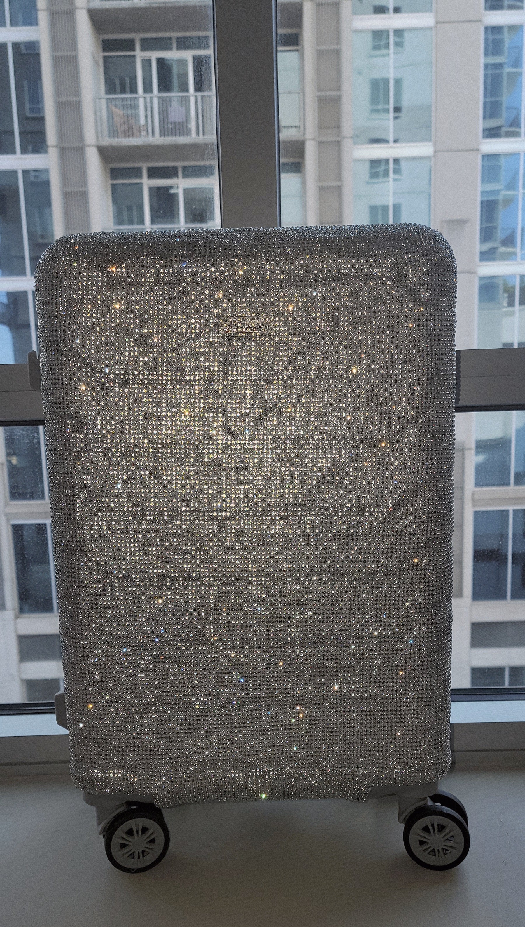 "NEW YORK HEIRESS" Custom Order Silver Rhinestone Crystal Diamante TSA size Approved Carry-on Luggage Case