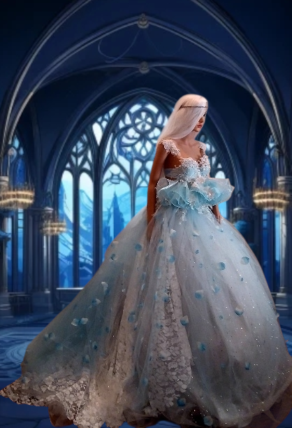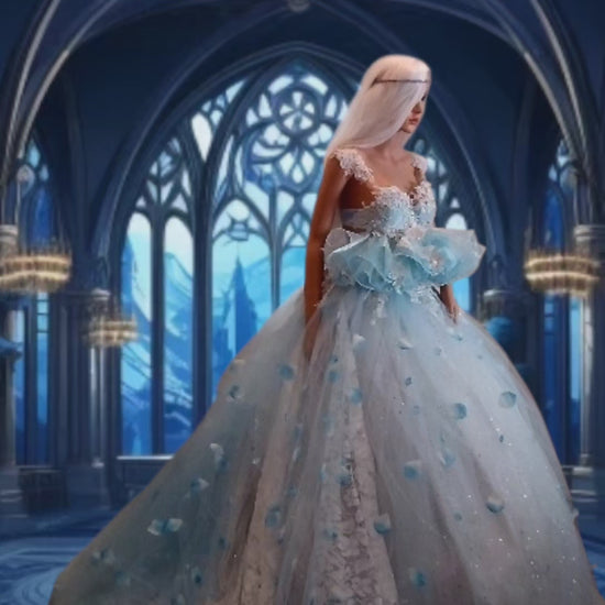 Sample Gown "SERENITY" Blue & White Lace & Tulle Wedding Ballgown Set