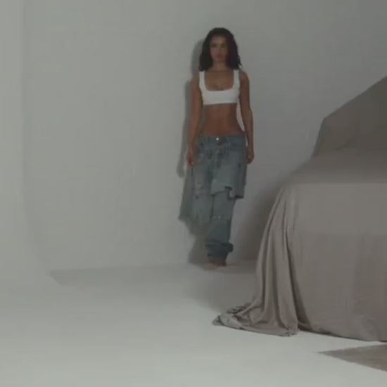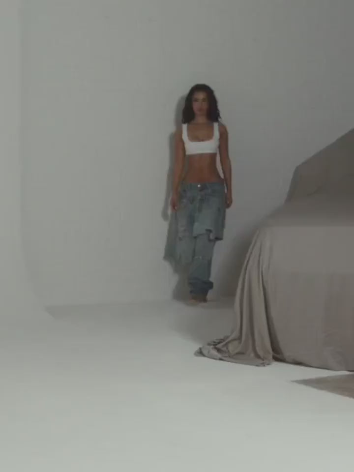 Get the best of both worlds with our Sexy Hybrid Distressed Destroyed Ripped Asymmetrical Skirt Overlay Jeans. Low rise and versatile, these jeans are perfect for clubbing or any on-trend party. The shredded and torn details add a sexy touch, while the asymmetrical skirt overlay adds a unique spin.